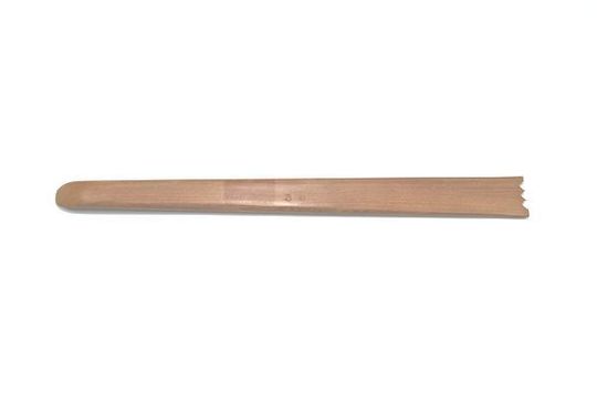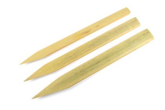 成形の最後に、作品の形を整えるために使用する竹へら、竹こて
