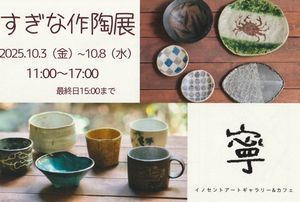 埼玉県伊奈町のイノセントギャラリー&カフェ「寧」では、10/3~10/8まで、武州羽生窯・中村氏の作品を展示販売した陶芸個展が開催されます。